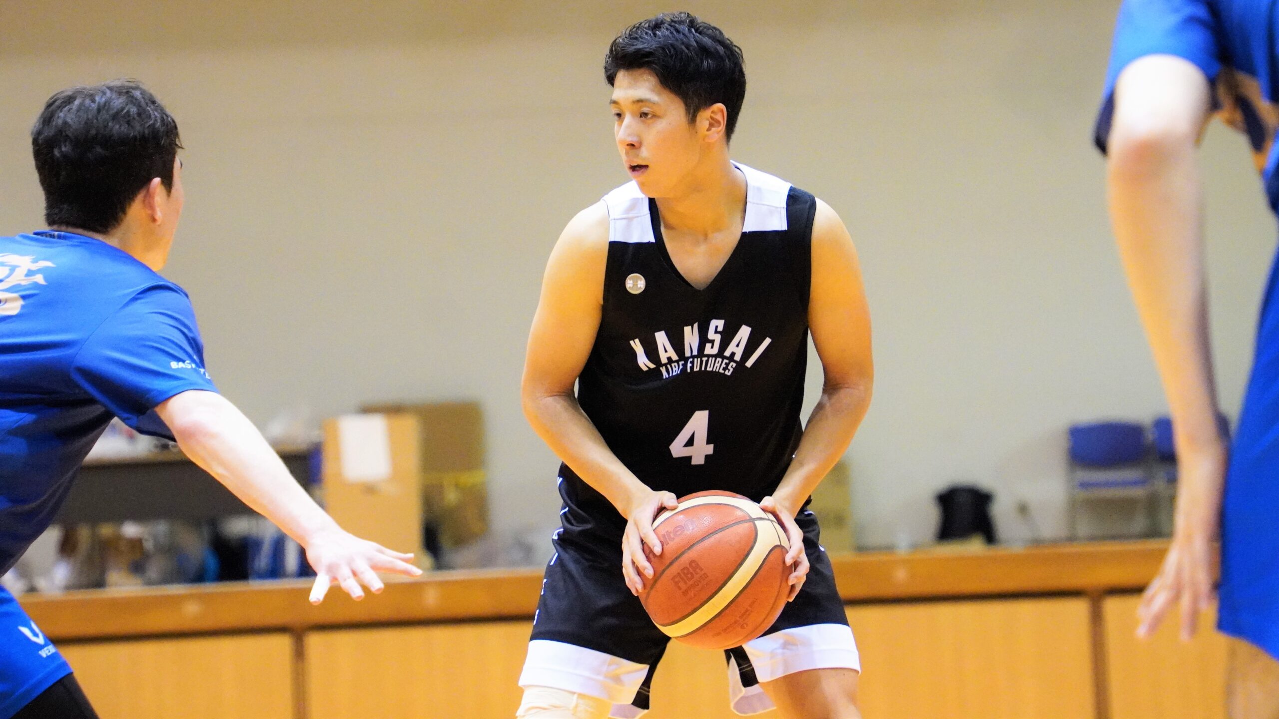 1Qと同様に関西選抜Futuresが速攻で点を重ね、要所要所で3Pシュートを決め切るなど流動的なオフェンスを見せる中、漢陽大學校はフィジカルの強さを活かしたインサイドプレーで互いに流れを譲らない試合展開となる。試合は44-44の同点で後半へ。