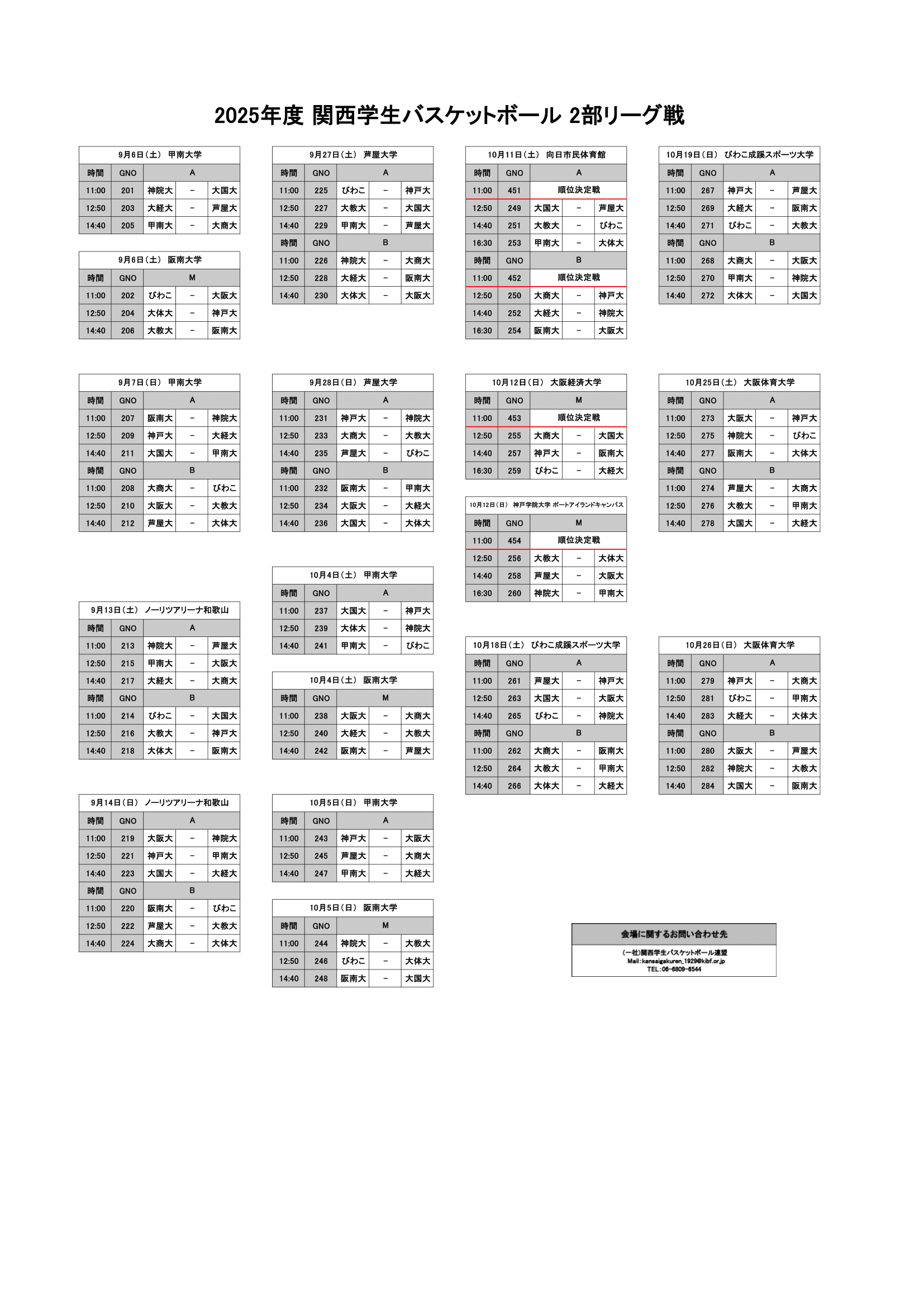 2025年リーグ戦Div.2の順位決定戦の組み合わせが確定しました