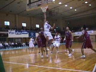 | 【戦評】序盤から京産大は早い展開、一方の立命館は早い展開に対応できず、外角からの得点のみというしんどい展開でゲームを進める。2Qに入り立命館は2−3ゾーンにDを切り換えるも京産大の勢いは止まらない。後半に入り、京産大が着実に得点を重ね、4Qで立命館のゾーンが機能し始め京産大の得点は止まるも時すでに遅く逆点に至らず、ゲームセット。 |