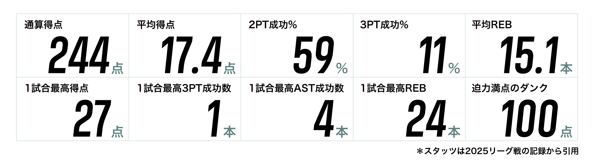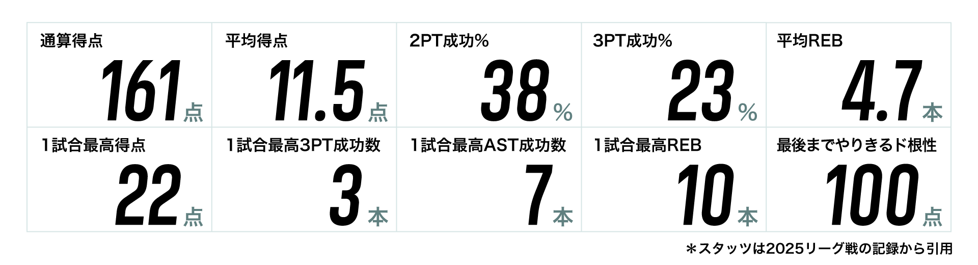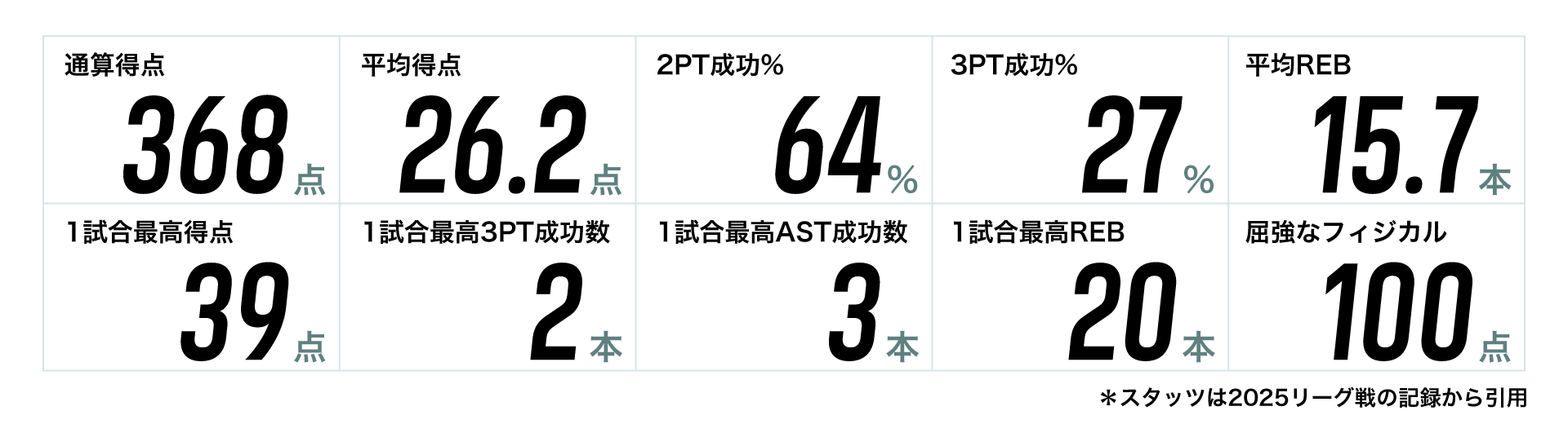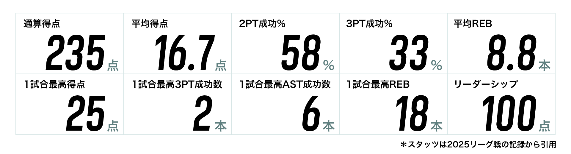 選出された選手は公式戦のスタッツをピックアップし、
